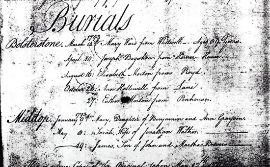 in the parish records of St. Mary's Church, Bolsterstone and from the Chapelry