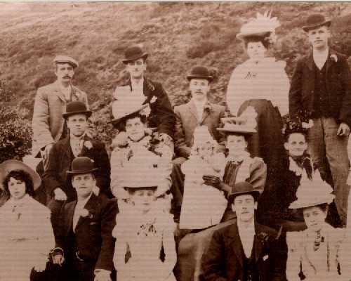 Walter SHAW and Jane HAIGH. A working class family .. but all the ladies wearing very fine hats .. they were made by Jane's friend .. the lady sat far right on the front row.